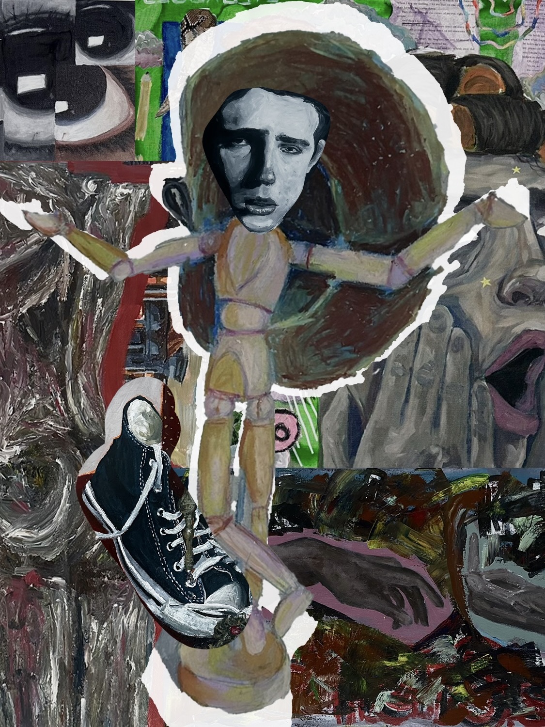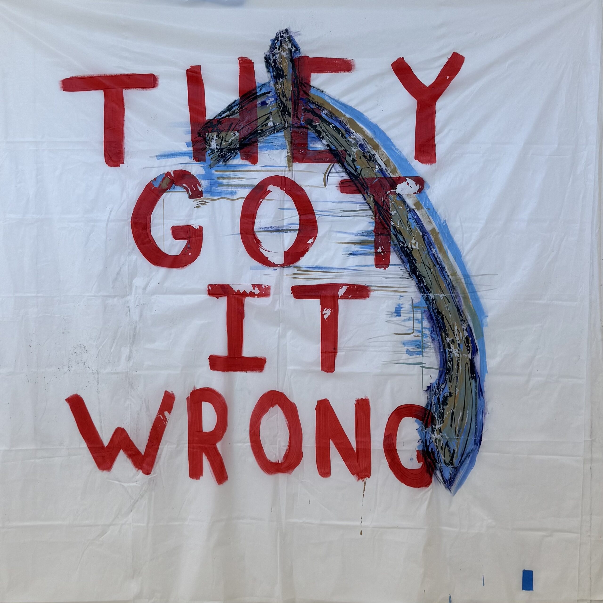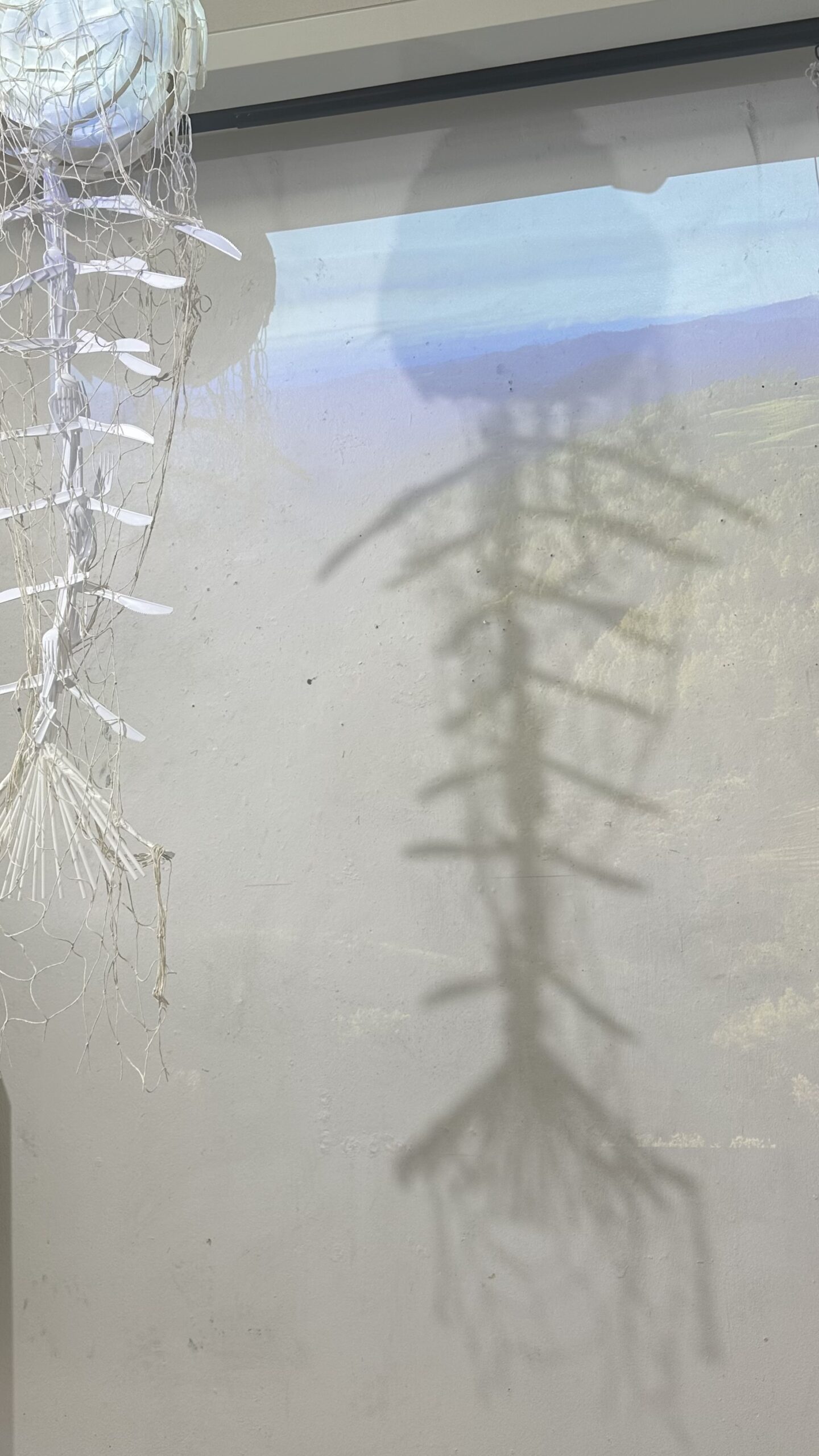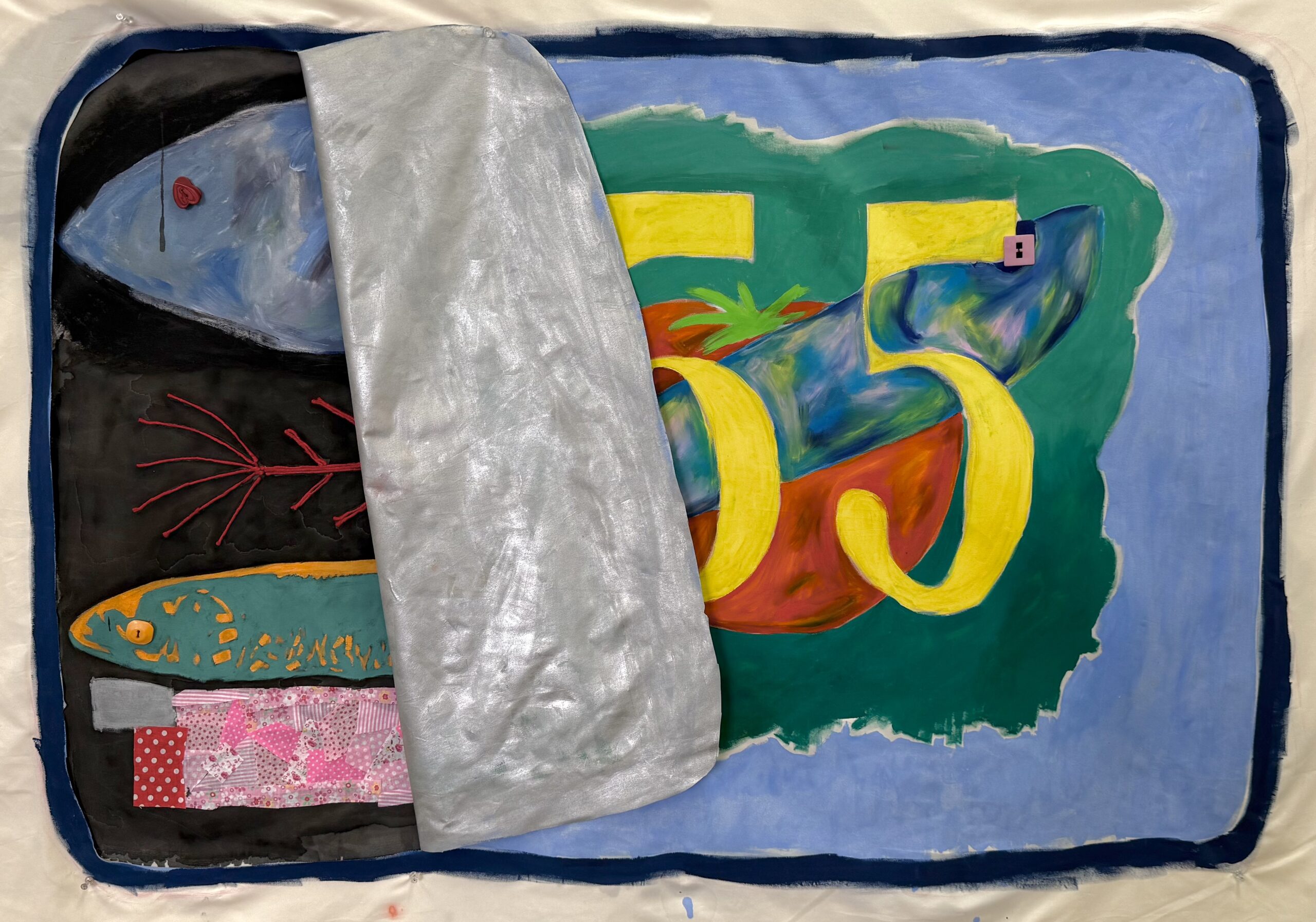 Got the Bigger Half of the Wishbone - Mixed Media on Plastic Tablecloth, 2025