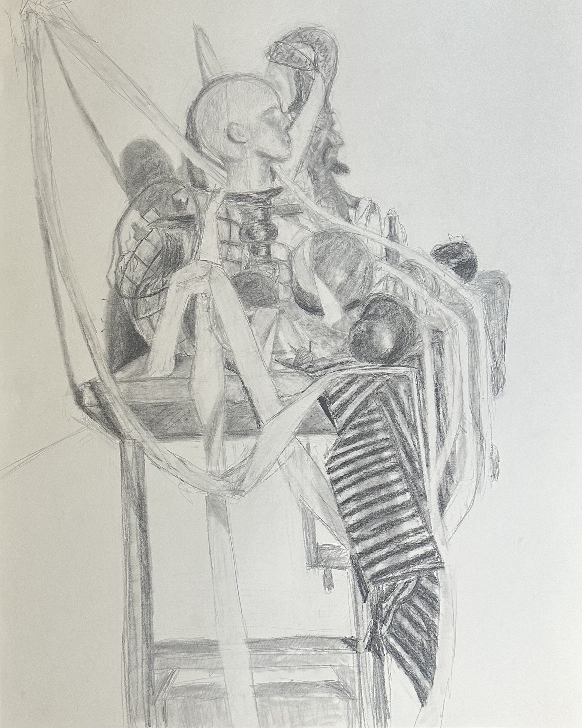 Formal Fred Still Life - Graphite on Paper, 18" x 24", 2024