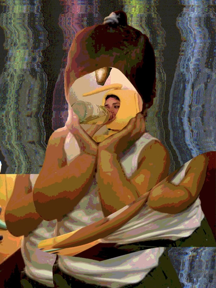 "Sorry about that, sweetie," she snickers, "I needed a disguise." She has your voice.