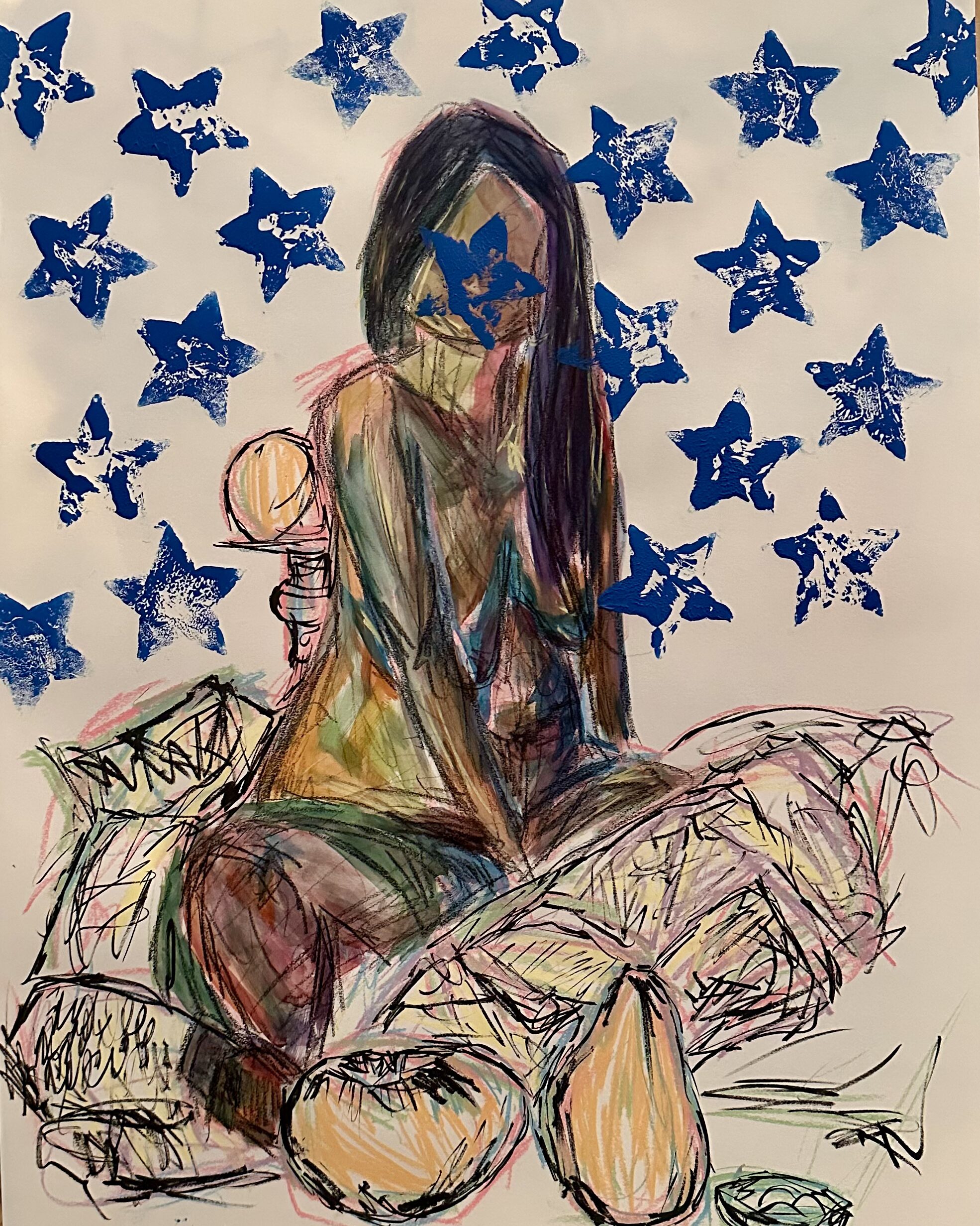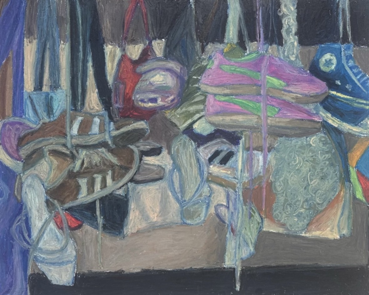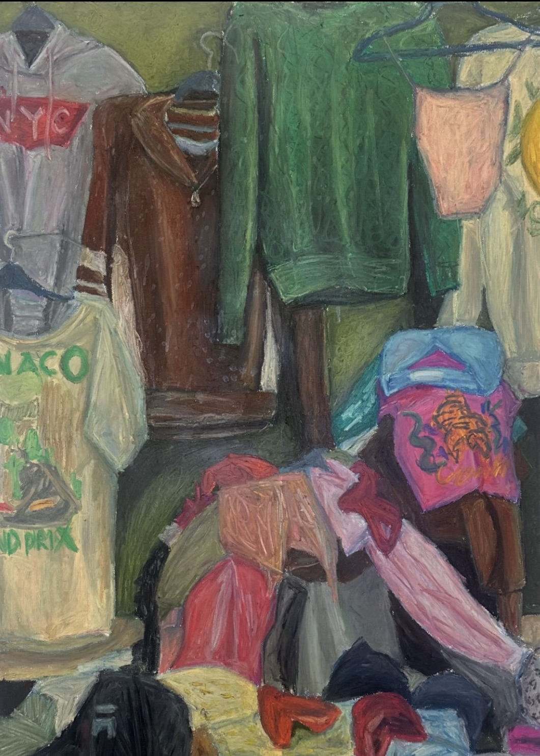 Mess Under the Bed - Oil Pastel on Canvas, 20" x 24"
