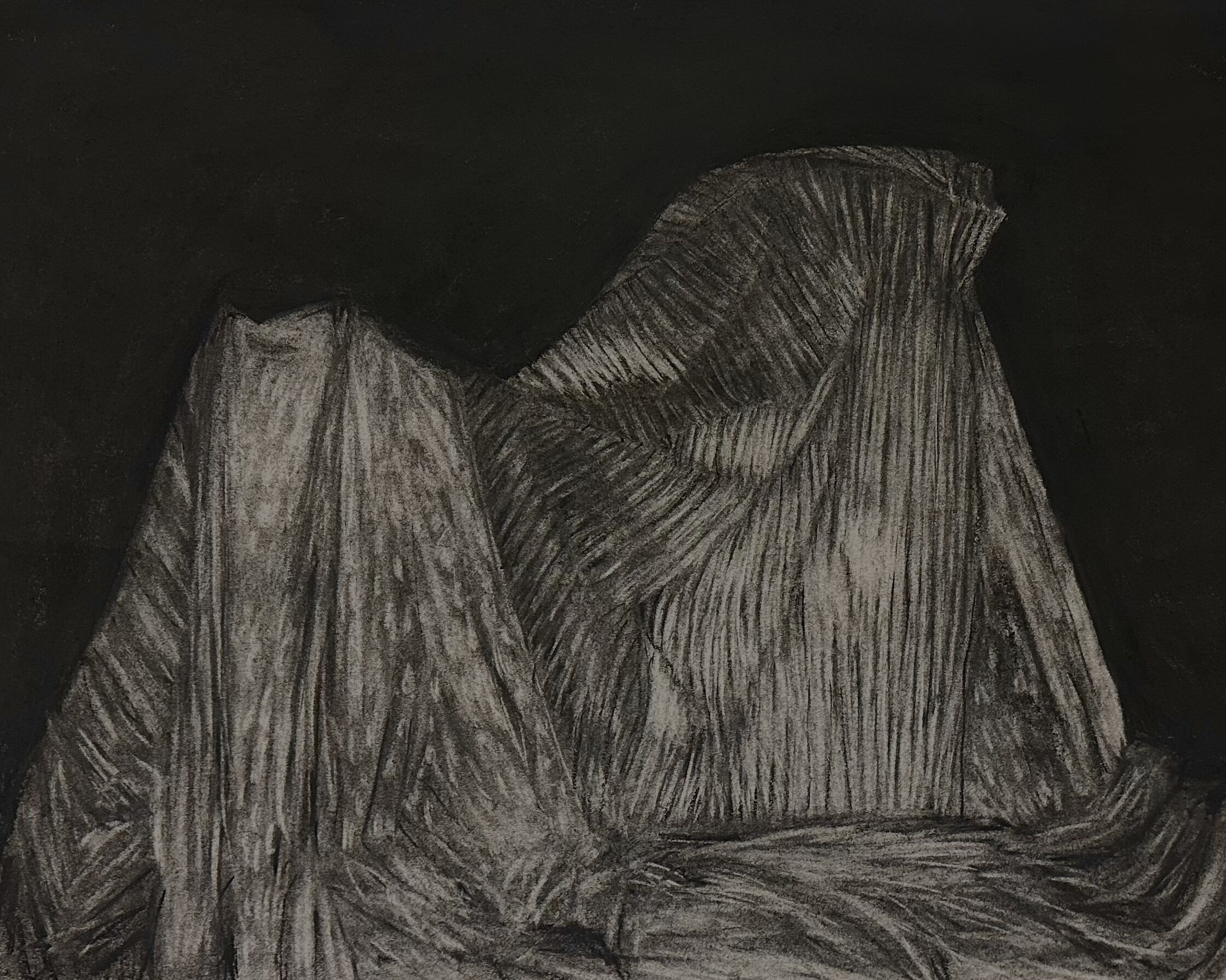 Glow Worm Still Life - Charcoal on Paper, 18" x 24", 2024