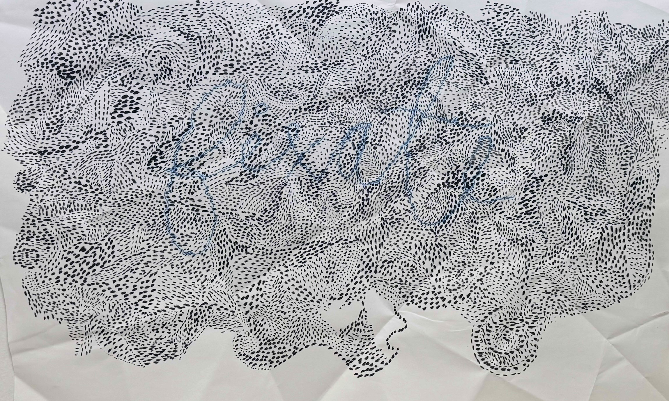 Sardines in Sequence Synthesis - Mixed Media on Bedsheet